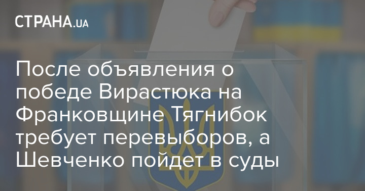 На фоне информации ЦИК о победе кандидата от "Слуги народа" Василия Вирастюка на довыборах в парламент на округе №87 занявший второе место Александр Шевченко ("За будущее") заявил о намерении обжаловать в суде результаты пересчета голосов. А лидер партии "Свобода" потребовал провести перевыборы.