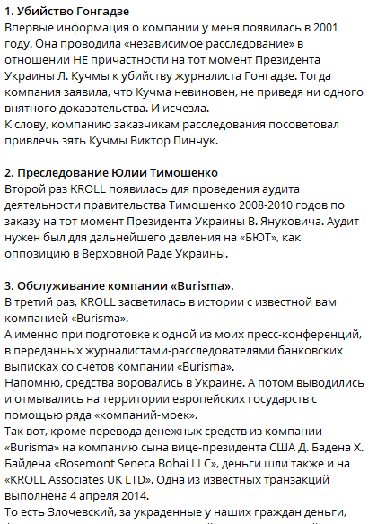 Кроме того, по данным Деркача, в третий раз, KROLL засветилась в истории с компанией "Burisma". "А именно при подготовке к одной из моих пресс-конференций, в переданных журналистами-расследователями банковских выписках со счетов компании "Burisma".