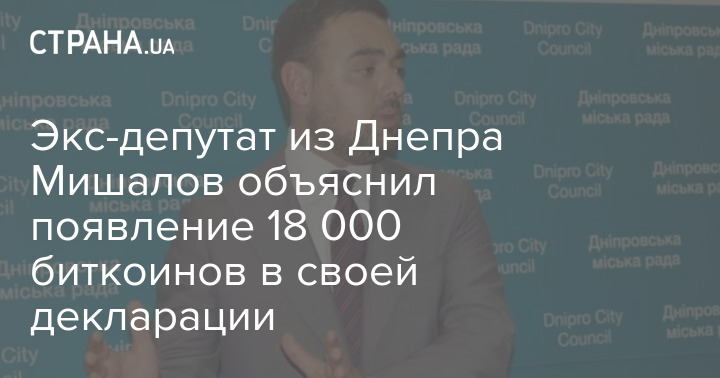 Экс-депутат Днепровского городского совета Вячеслав Мишалов в комментарии "Стране" опроверг информацию о том, что имеет 18 тысяч биткоинов (по данным на сегодня, это соответствует одному миллиарду долларов).