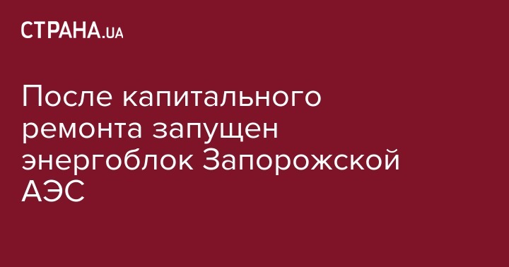 В среду, 21 сентября 2016 г. в 17:31, к энергосети Украины подключен энергоблок № 1 Запорожской АЭС. На объекте завершен капитальный ремонт, сообщает УНН со ссылкой на пресс-службу Энергоатома.