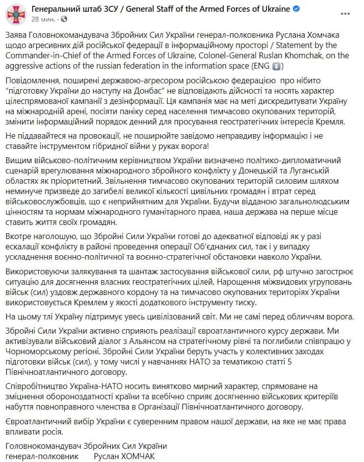 Хомчак сделал официальное заявление. Фото: Генштаб ВСУ