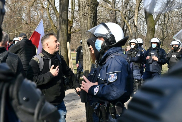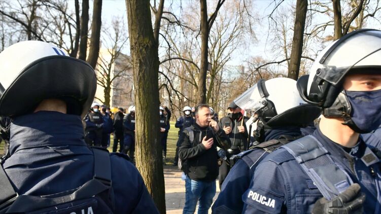 При этом несколько десятков человек вышли на площадь Пилсудского с флагами "Забастовки предпринимателей", которая проходит в знак протеста против карантинных мер. Во время акции взорвалось несколько петард. По данным журналистов, на месте присутствуют значительные силы полиции, которые отгородили протестующих.