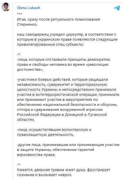 Для них и так де-факто действуют нормы особого судопроизводства. Теперь же это провозглашается уже на уровне президента: так, "справедливое правосудие" гарантируется почему-то лишь этой группе, а остальным украинцам – в обычных, видимо, уже не таких "справедливых" рамках.