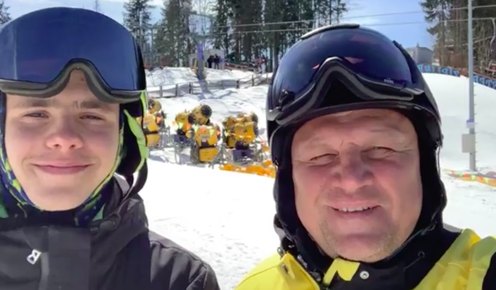 Шевченко с сыном лично возобновил работу "Буковеля". Фото: стоп-кадр с видео Шевченко, Facebook