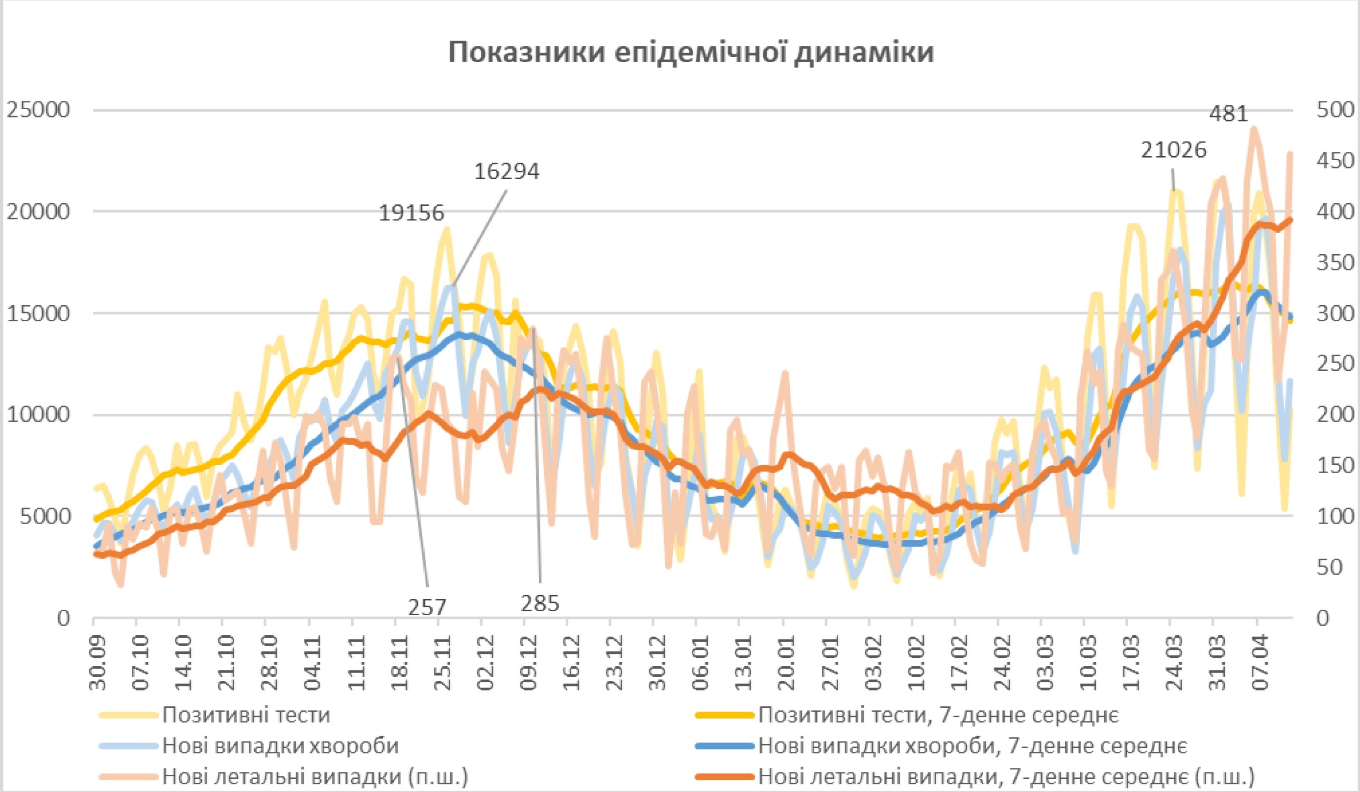 Об этом свидетельствуют данные обзора эпидемической ситуации в Украине 7-13 апреля от Национальной академии наук Украины.