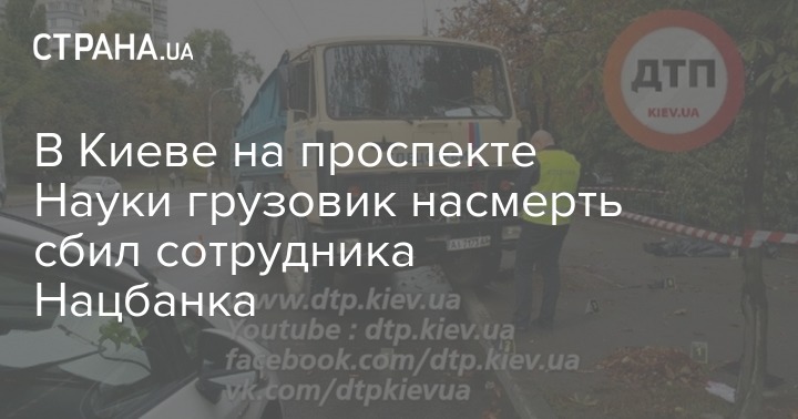 Сегодня, 22 сентября, в Киеве на проспекте Науки грузовик МАЗ насмерть сбил сотрудника Нацбанка. Об этом сообщает dtp.kiev.ua в Facebook.