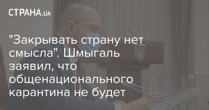 "Закрывать страну нет смысла". Шмыгаль заявил, что общенационального карантина не будет