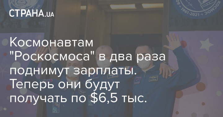 Космонавтам и кандидатом в космонавты "Роскосмоса" поднимут зарплаты на 70% и 50% соответственно. Теперь опытные космонавты будут получать около 500 тыс. рублей (примерно 182 тыс. грн или 6,5 тыс. долларов).