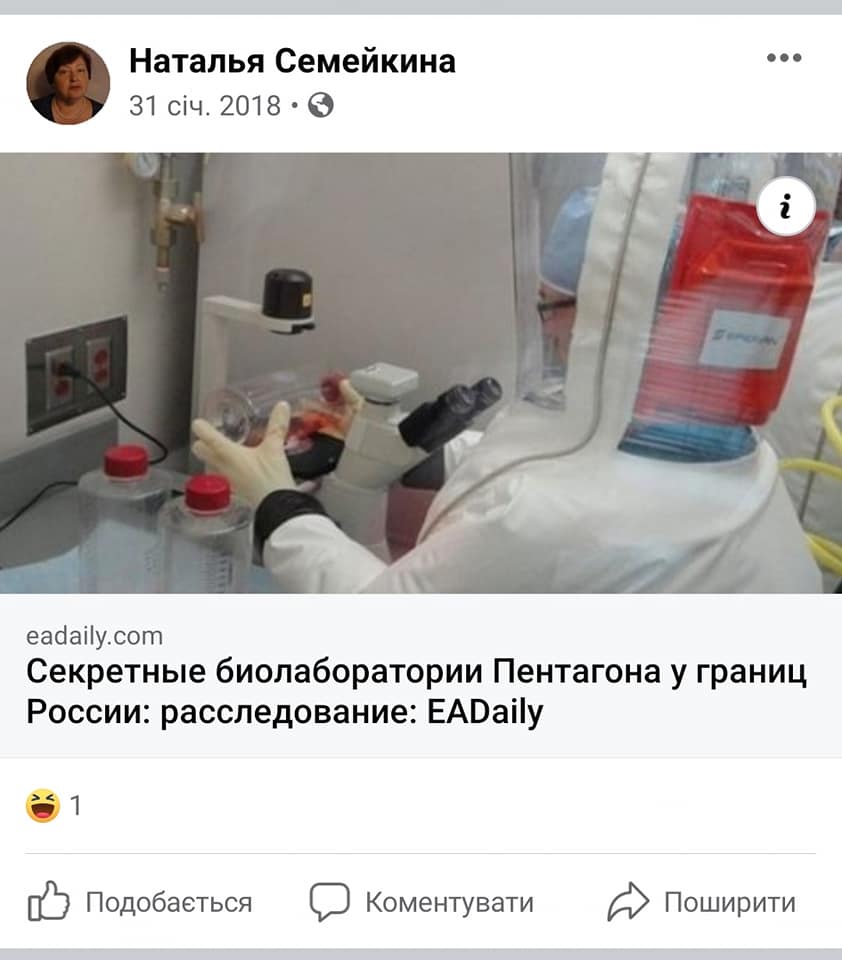 Например, пост о секретных лабораториях Пентагона.