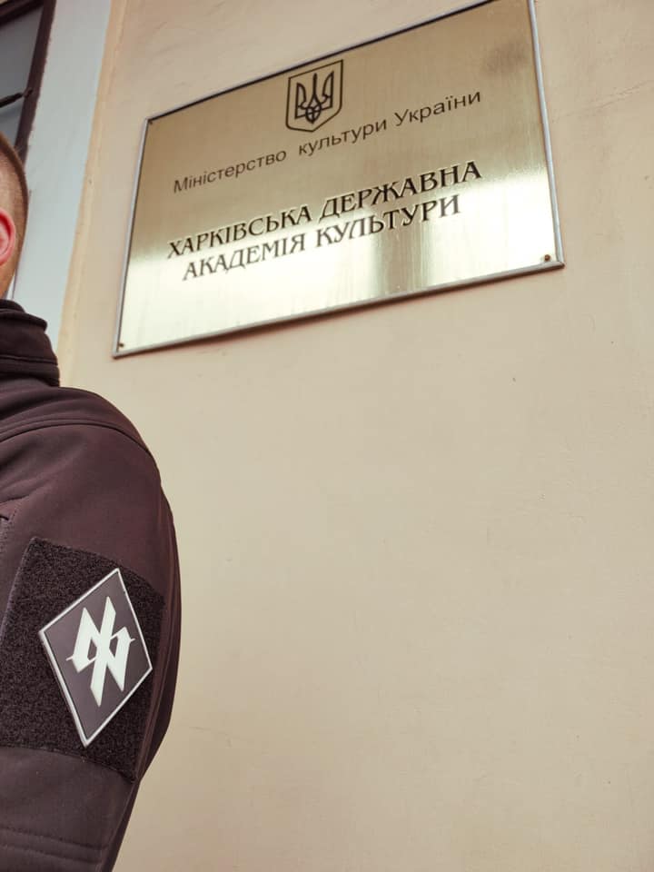 Бойцы фрайкора провели предупредительную акцию перед академией культуры. Мы требуем немедленного увольнения Натальи Семейкинои из Харьковской государственной академии культуры!