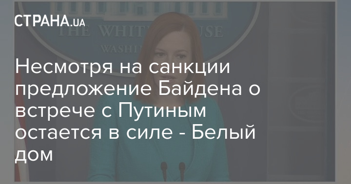 Пресс-секретарь Белого дома Джен Псаки заявила, что предложение Вашингтона провести встречу президентов США Джо Байдена и России Владимира Путина на территории третьей страны остается в силе несмотря на американские санкции.