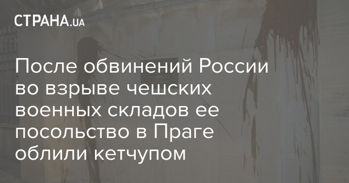 После обвинений России во взрыве чешских военных складов ее посольство в Праге облили кетчупом