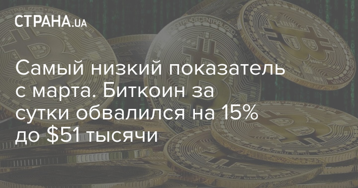 Самый низкий показатель с марта. Биткоин за сутки обвалился на 15% до $51 тысячи