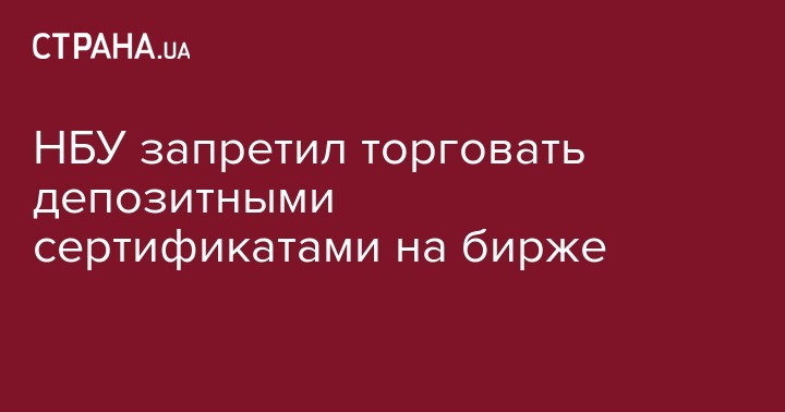 Национальный банк Украины отменил проведение операций с депозитными сертификатами регулятора путем участия в торгах, проводимых на бирже. Изменения вступают в силу с 23 сентября 2016 года. Об этом сообщили в пресс-службе НБУ.