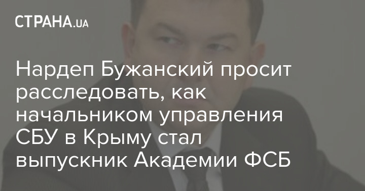 Нардеп от "Слуги народа" Максим Бужанский обратился к Минюсту, профильному парламентскому комитету, Государственному бюро расследований (ГБР) и президенту Владимиру Зеленскому с просьбой расследовать факт назначения на должность начальника Главного управления Службы безопасности Украины в АР Крым Олега Кулинича, который ранее учился в Академии Федеральной службы безопасности (ФСБ) России и проходил воинскую службу в Федеральной службе контрразведки (ФСК) РФ.