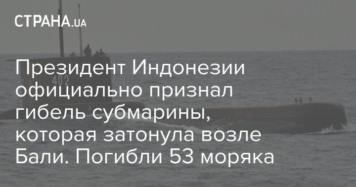 Президент Индонезии Джоко Видодо заявил, что подводная лодка KRI Nanggala-402 затонула в Балийском море. В связи с этим он выразил соболезнование семьям всех 53 членов экипажа.