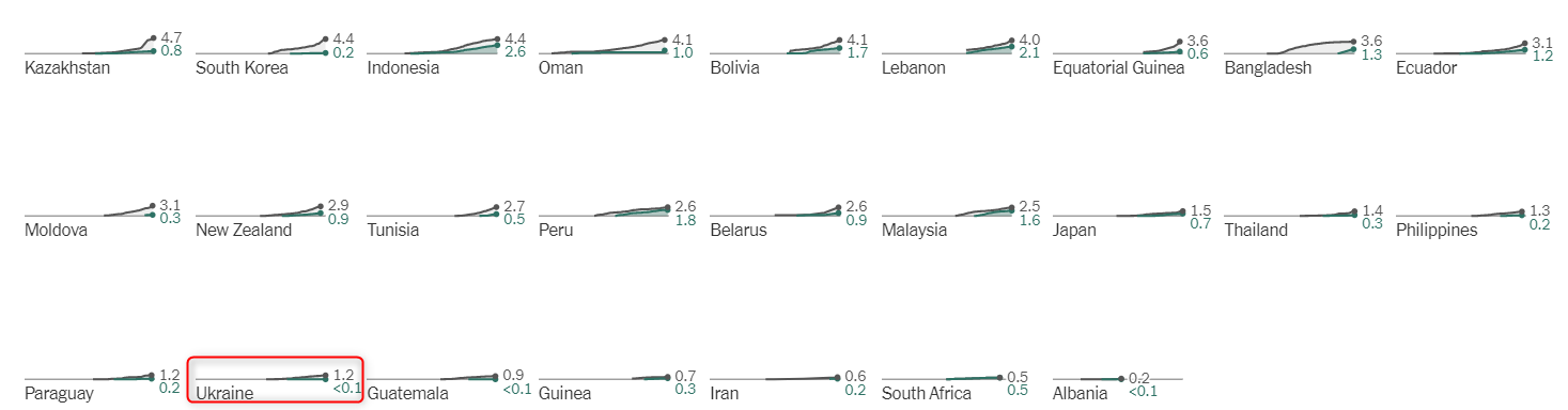 По этому показателю Украина сейчас в конце международных рейтингов по вакцинации. По данным газеты The New York Times, наша страна по доле привитого населения на шестом месте от конца, между Парагваем и Гватемалой.