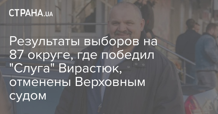 Большая палата Верховного суда отменила протокол ЦИК об установлении результатов выборов на 87 округе в Ивано-Франковской области. (По результатам выборов на округе победил спортсмен Василий Вирастюк, "Слуга народа")