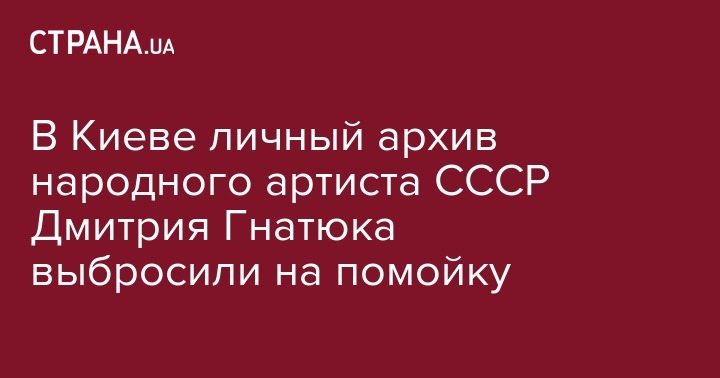Личный архив покойного народного артиста СССР и Героя Украины Дмитрия Гнатюка выбросили на мусорник.