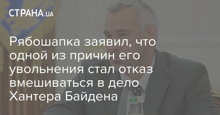 Бывший генеральный прокурор Украины Руслан Рябошапка допустил, что одной из причин для его отставки был отказ вмешиваться в дело сына тогдашнего кандидата в президенты США Джо Байдена Хантера.