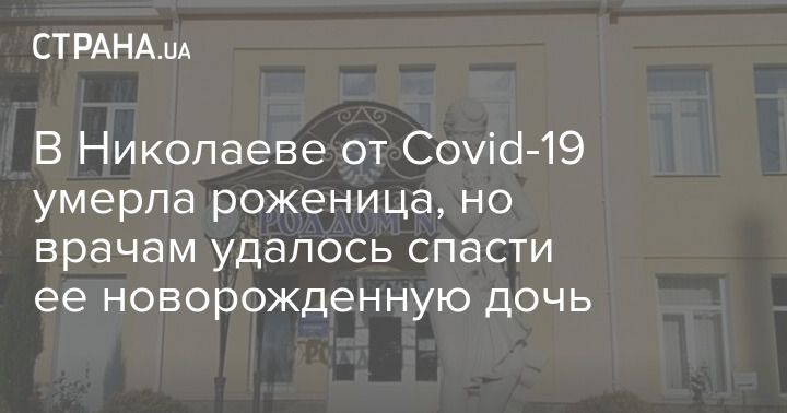 В Николаеве от осложнений поле Covid-19 умерла роженица из Херсонской области. При этом медикам удалось спасти новорожденного малыша. Инцидент произошел в городском роддоме №1, информацию о нем подтвердили в горуправлении здравоохранения, передают "Новости-N".