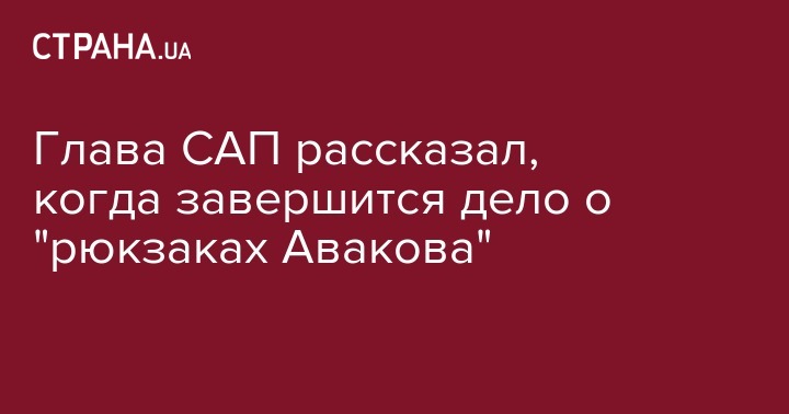 Назар Холодницкий, руководитель Специализированной антикоррупционной прокуратуры (САП) анонсировал завершение дела о "рюкзаках Авакова" в начале - середине октября. Об этом сообщает 112 Украина.