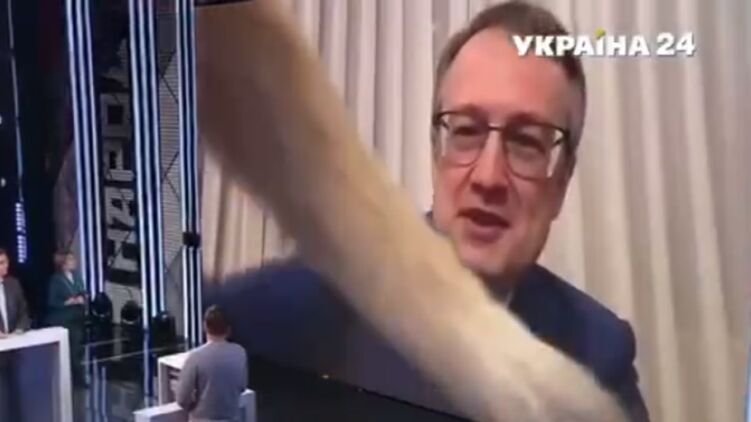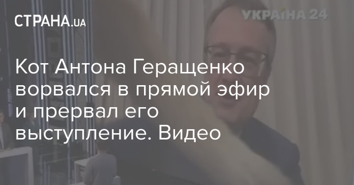 Кот Антона Геращенко ворвался в прямой эфир и прервал его выступление. Видео