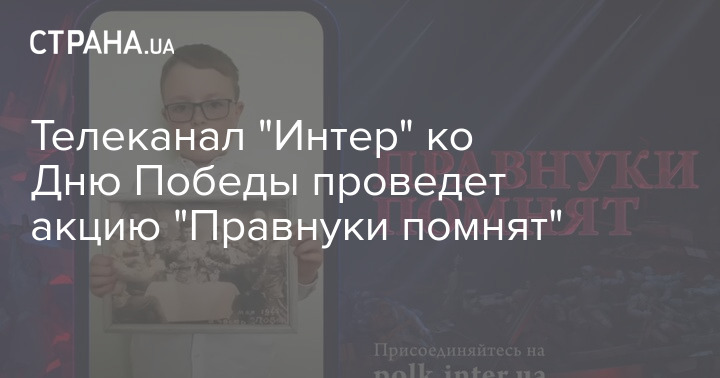 Телеканал "Интер" ко Дню Победы - 2021 начинает акцию "Правнуки помнят". В рамках мероприятия родители могут прислать короткое видео, в котором их дети рассказывают о родственниках, принявших участие в Великой Отечественной войне.