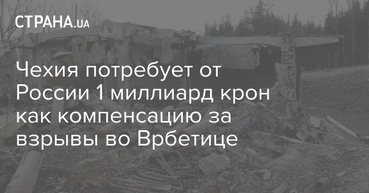 Чехия намерена потребовать от России компенсацию за взрывы на складах боеприпасов в деревне Врбетице в 2014 году. Сумма запрашиваемой компенсации может составить минимум 1 миллиард крон (около 47,5 млн долларов или 1,3 млрд грн по курсу - Ред.).