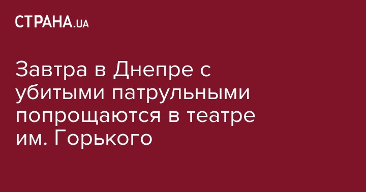 Завтра в 12:00, 26 сентября, в театре им. Горького пройдет прощание с убитыми патрульными. Об этом на странице в Facebook сообщил мэр Днепра Борис Филатов.