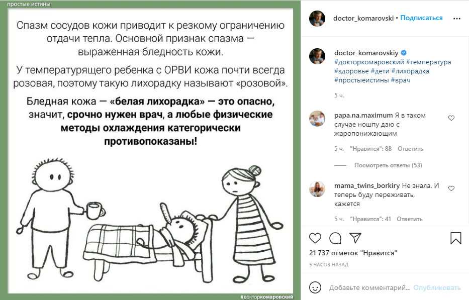 "Спазм сосудов кожи приводит к резкому ограничению отдачи тепла. Основной признак спазма - выраженная бледность кожи", - пишет Комаровский.