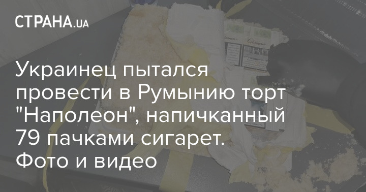 "Сообразительный украинец вез в Румынию гостинец – на вид обычный торт "Наполеон". Но как оказалось, "кулинарный шедевр" был приготовлен не по классическому рецепту. Главным сырьем для изготовления кондитерского изделия были сигареты. Роль коржей для торта играли 79 пачек сигарет", — говорится в сообщении.
