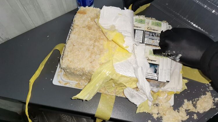 Пограничники задержали украинца, который хотел вывести сигареты под видом торта. Фото: Госпогранслужба