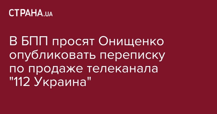 В БПП просят Онищенко опубликовать переписку по продаже телеканала "112 Украина"