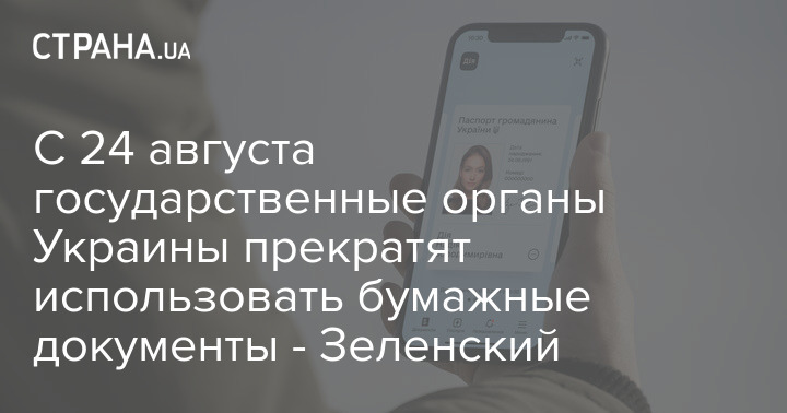 "24 августа 2021 года Украина войдет в режим "paper less", как мы и обещали. Никаких бумаг для государственных органов. Никто не сможет требовать от гражданина Украины бумажки или справки для предоставления государственных услуг. Мы сделаем все, чтобы государство без бумажек действительно существовало", - заявил Зеленский.