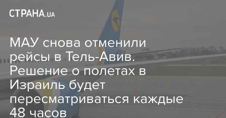МАУ снова отменили рейсы в Тель-Авив. Решение о полетах в Израиль будет пересматриваться каждые 48 часов