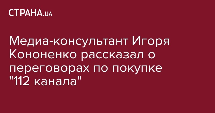 Медиа-консультант Игоря Кононенко рассказал о переговорах по покупке "112 канала"