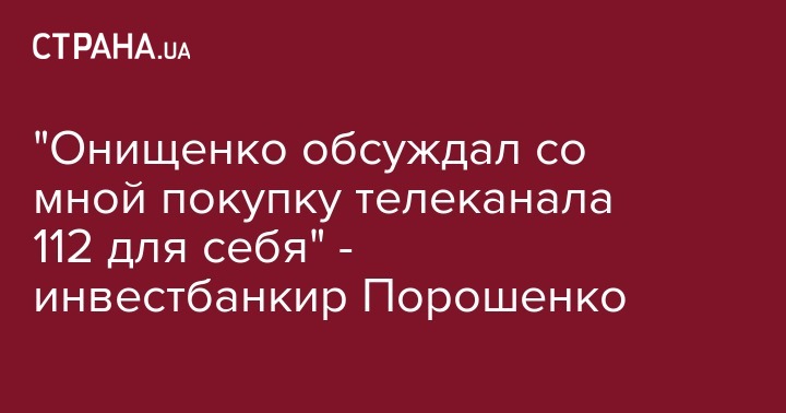 "Онищенко обсуждал со мной покупку телеканала 112 для себя" - инвестбанкир Порошенко