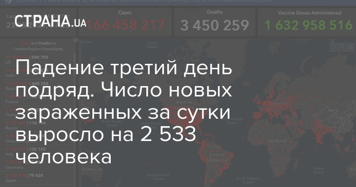 По состоянию на утро воскресенья, 23 мая, общее количество зараженных коронавирусом в Украине увеличилось на 2 533 человека.
