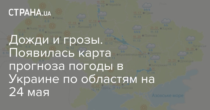 Дожди и грозы. Появилась карта прогноза погоды в Украине по областям на 24 мая