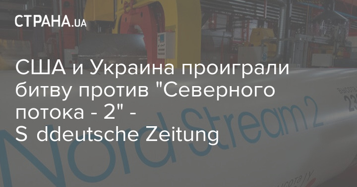 Крупнейшая газета Германии Süddeutsche Zeitung в своей статье пишет, что США и Украина проиграли битву против российского газопровода "Северный поток - 2", который почти построен.