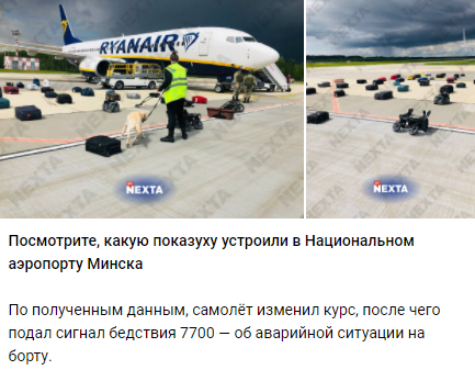 Экстренную посадку самолета близкие к Лукашенко СМИ подали с акцентом на том, что "Беларусь защитила Европу", мол Лукашенко дал безоговорочную команду разворачивать и принимать самолет из-за безопасности и жизни людей.