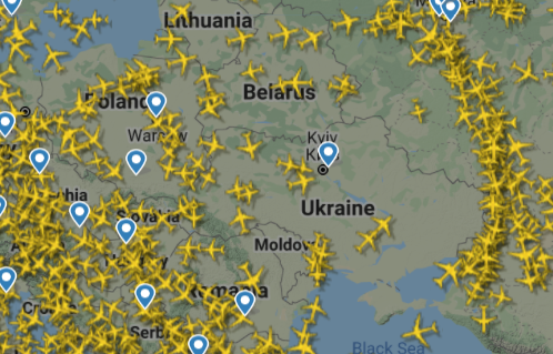 При этом пока над Беларусью довольно оживленное авиасообщение, судя по сервису FlightRadar. Оно более плотное, чем, скажем, над Украиной.