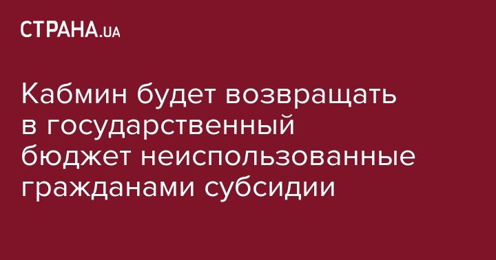 Кабмин будет возвращать в государственный бюджет неиспользованные гражданами субсидии
