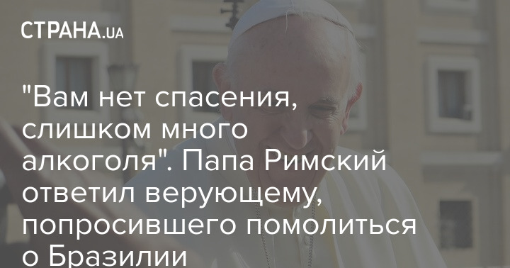 В ответ Папа Римский Франциск улыбнулся и пошутил: "Вам нет спасения. Слишком много кашасы (бразильский национальный крепкий алкогольный напиток - Ред.), слишком мало молитв".