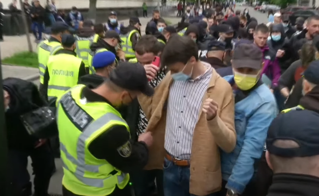 18:04 Пришел еще один организатор предыдущего погрома ОП - Роман Ратушный. Ему, как и "сыну Перуна" Филимонову суд в конце апреля отменил домашний арест.