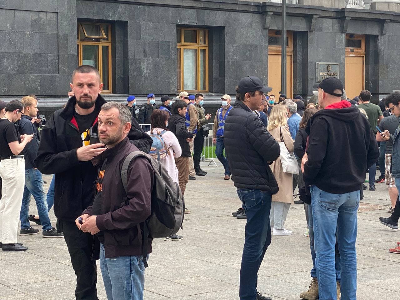 18:07 Под ОП уже бывший министр инфраструктуры Владимир Омелян, экс-нардеп Андрей Тетерук, а также гражданский муж Юлии Кузьменко Петр Киян.