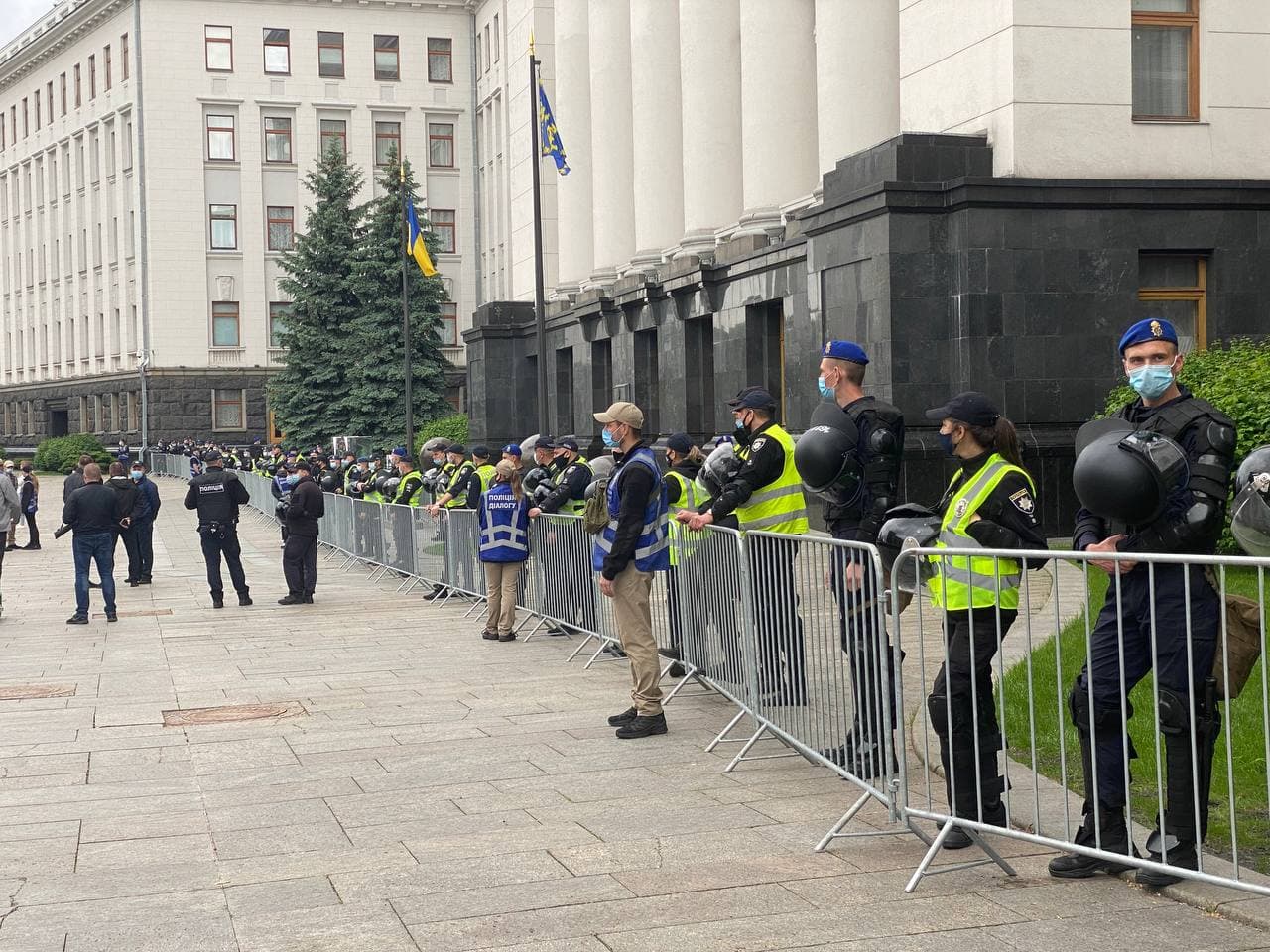 В отличии от предыдущего протеста 20 марта, сейчас Офис Президента охраняют усилено.