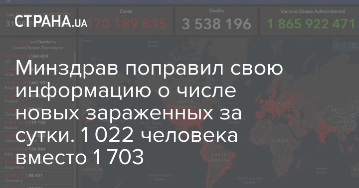 Минздрав поправил свою информацию о числе новых зараженных за сутки. 1 022 человека вместо 1 703