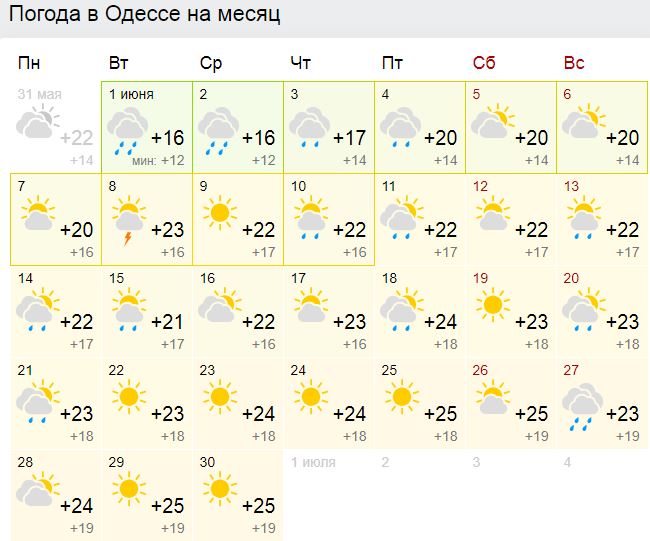 Погода в Одессе на июнь